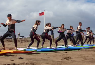 Les cours de surf en groupe sont la manière idéale d'apprendre et de partager l'excitation des vagues avec des amis, la famille ou de nouveaux compagnons d'aventure.