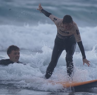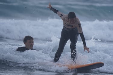Practical session in the water at Caleta de Famara with real-time coaching (positioning, wave catching, maneuvers)