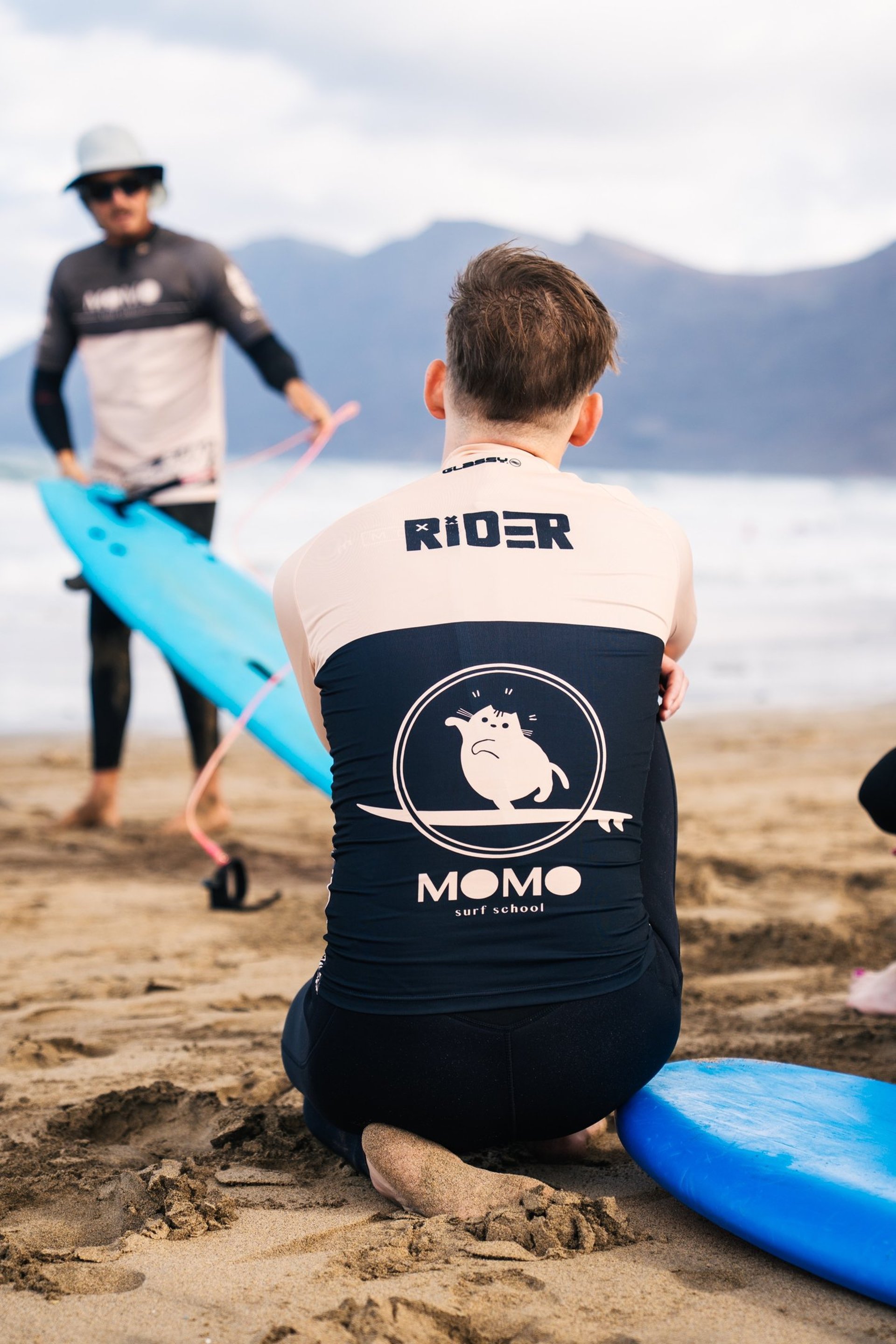 Aprende a surfear en la playa de Famara con Momo Surf School.