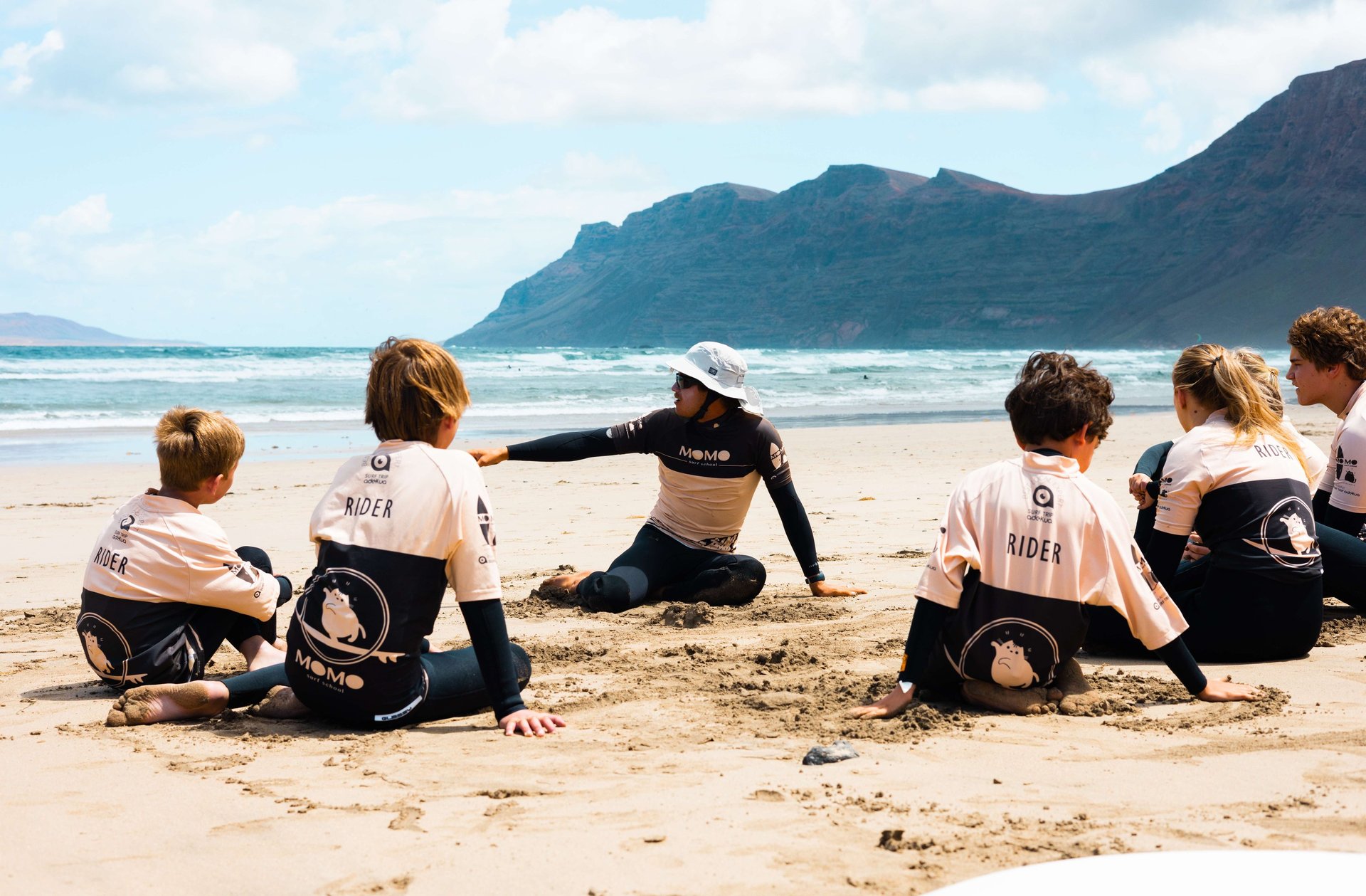 En Momo Surf School, en Caleta de Famara, el surf es una experiencia divertida y enriquecedora para niños en Lanzarote. Aceptamos a partir de los 6 años, siempre que se sientan cómodos en el agua y sepan nadar.